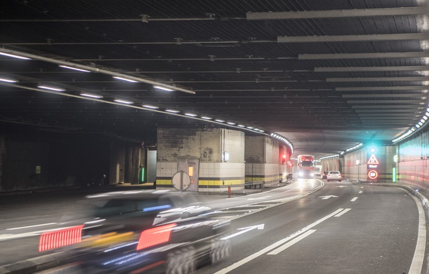 Ein 16.9km langer nationalstrassentunnel durch den sankt gotthard in den alpen.